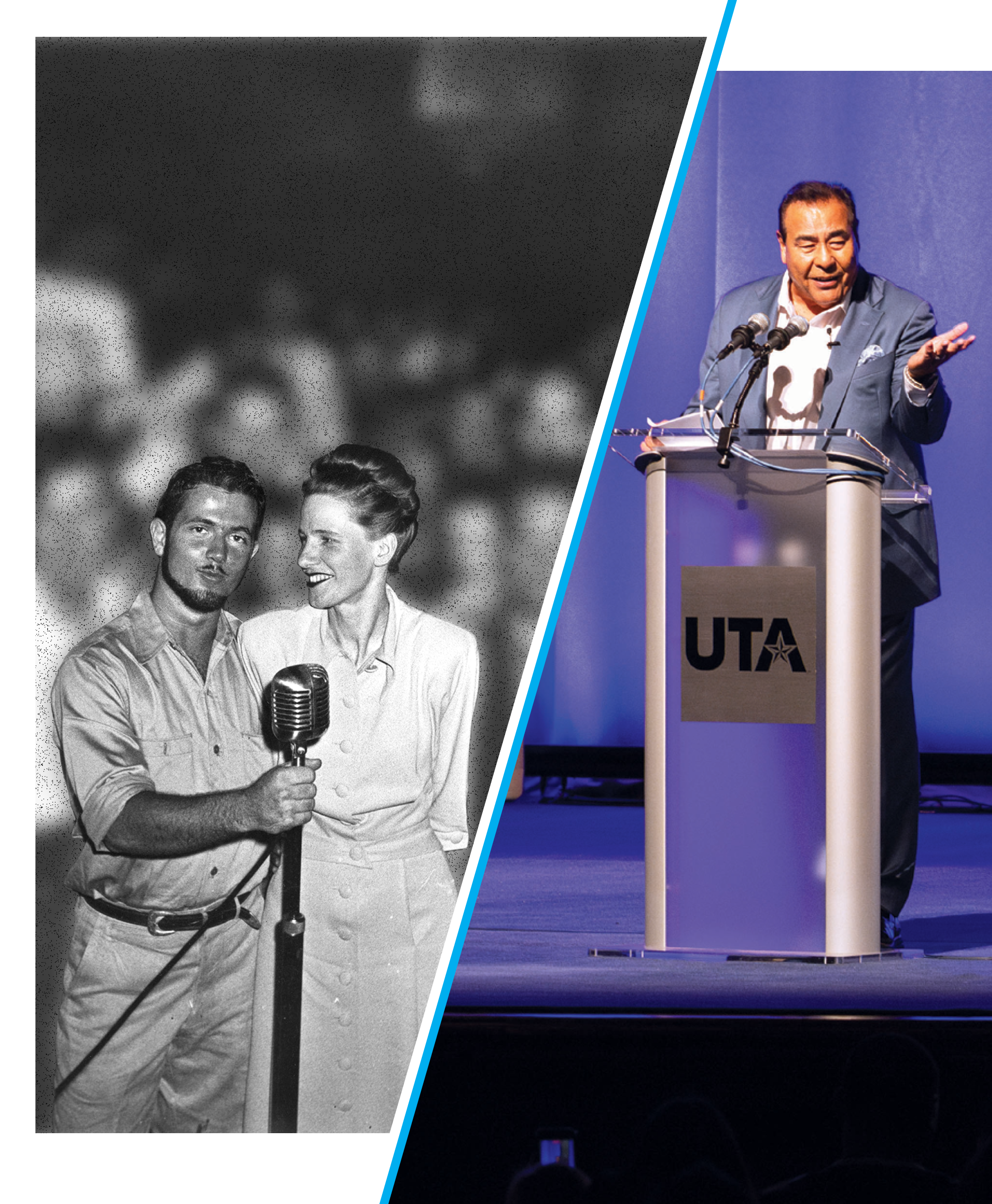 Photo caption: UTA has long been a gathering place for the community—where meaningful connections happen and, every so often, a legend like Minnie Pearl (left) or John Quiñones (right) drops by to join the fun.